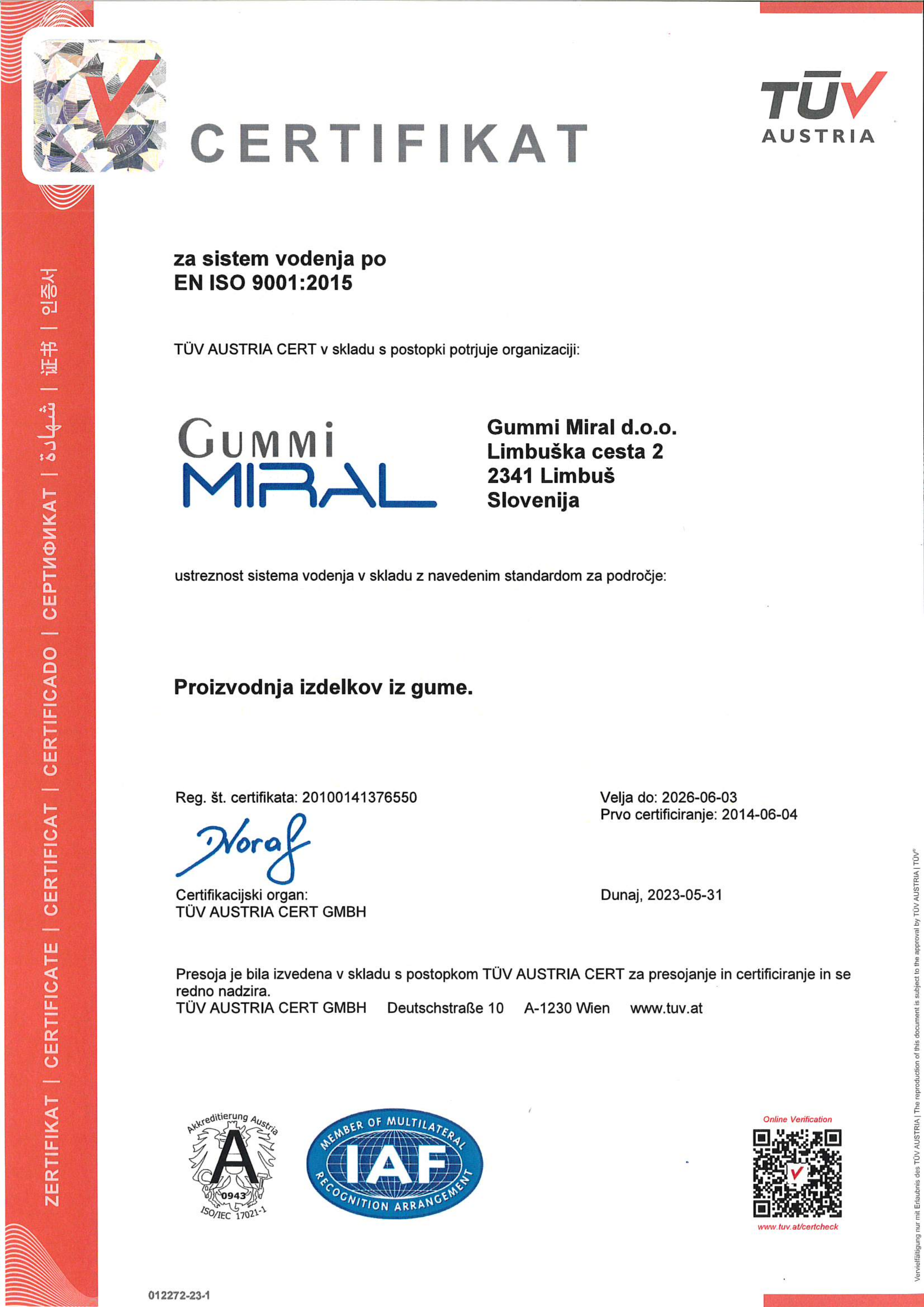 Kvaliteto naših storitev zagotavlja tudi certifikat TÜV AUSTRIA EN ISO 9001:2015 ter certifikat TÜV AUSTRIA EN ISO 14001:2015.